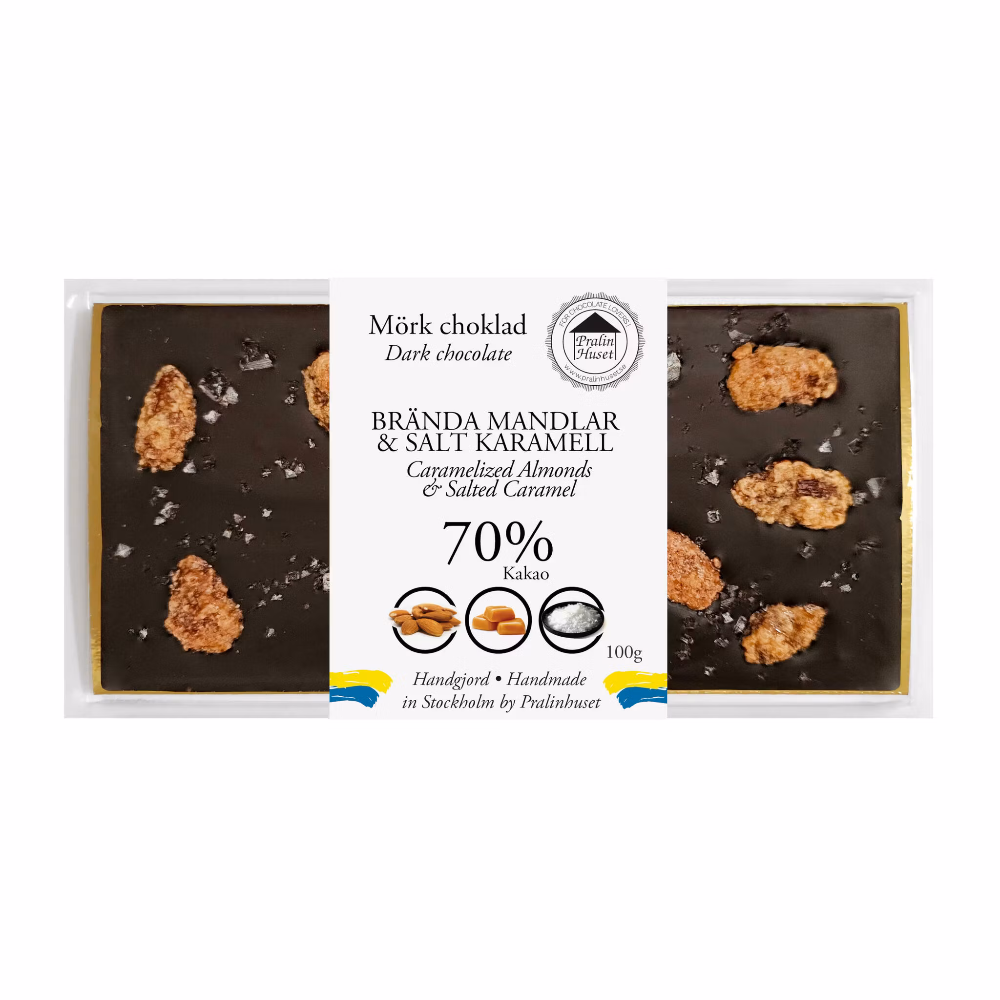 Pralinhuset - 70% Kakao - Brända Mandlar & Salt Karamell