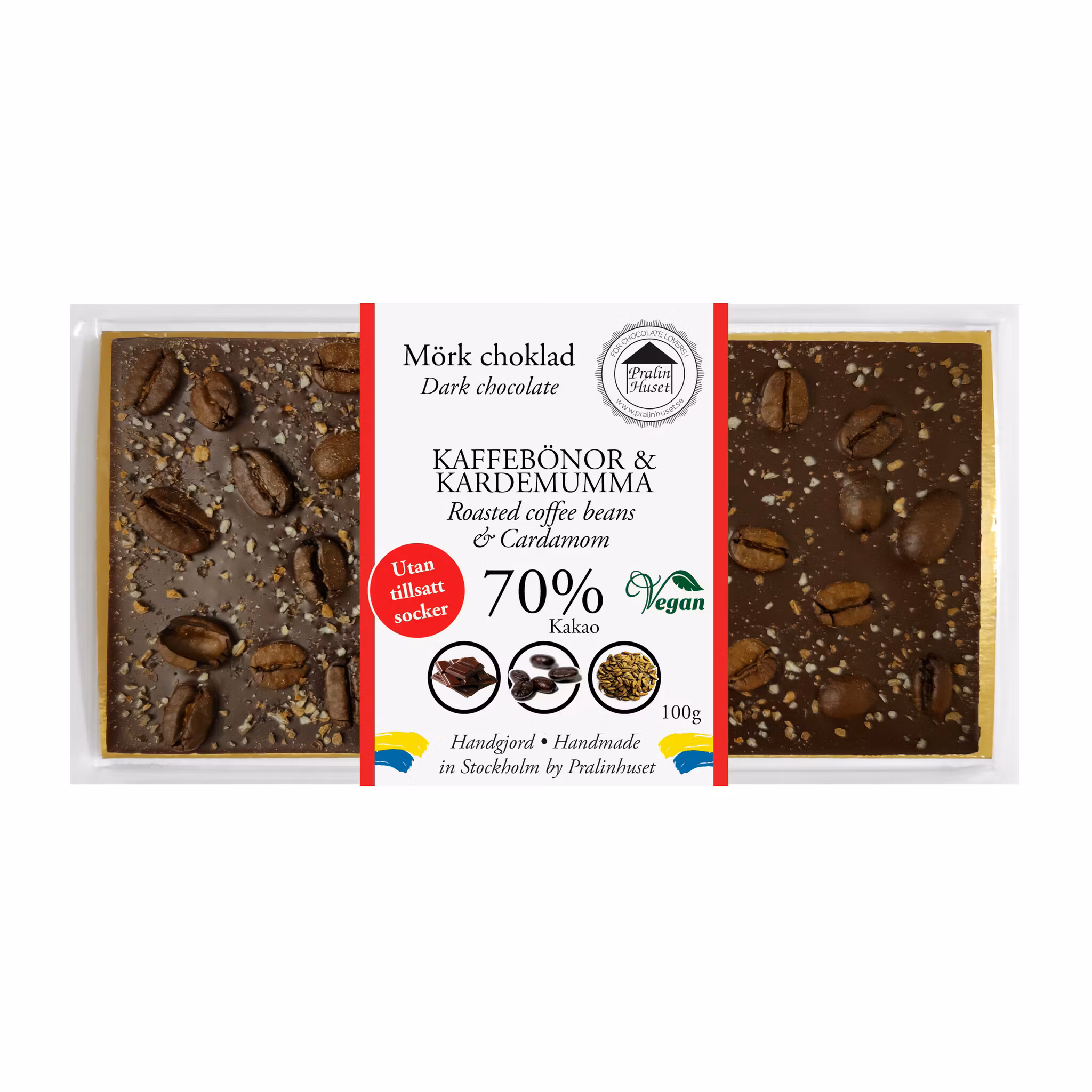Pralinhuset - 70% Kakao - Kaffebönor & Kardemumma - Utan Tillsatt Socker