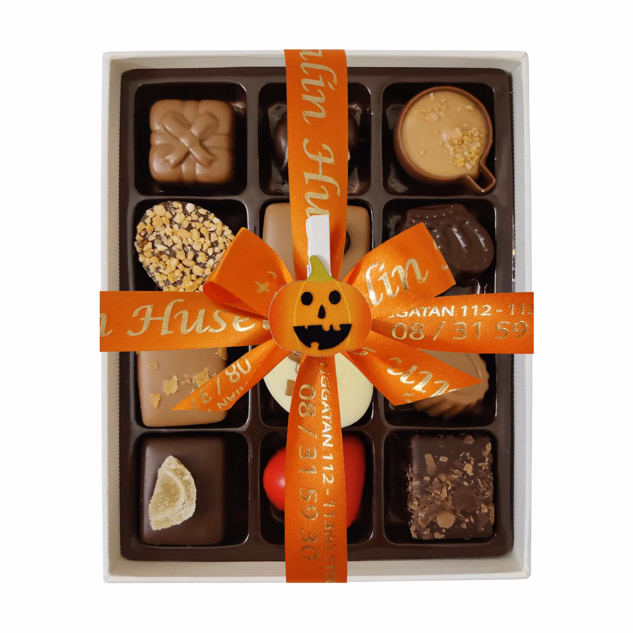 Elegant vit ask med 12 bitar praliner och tryfflar i husets blandning.