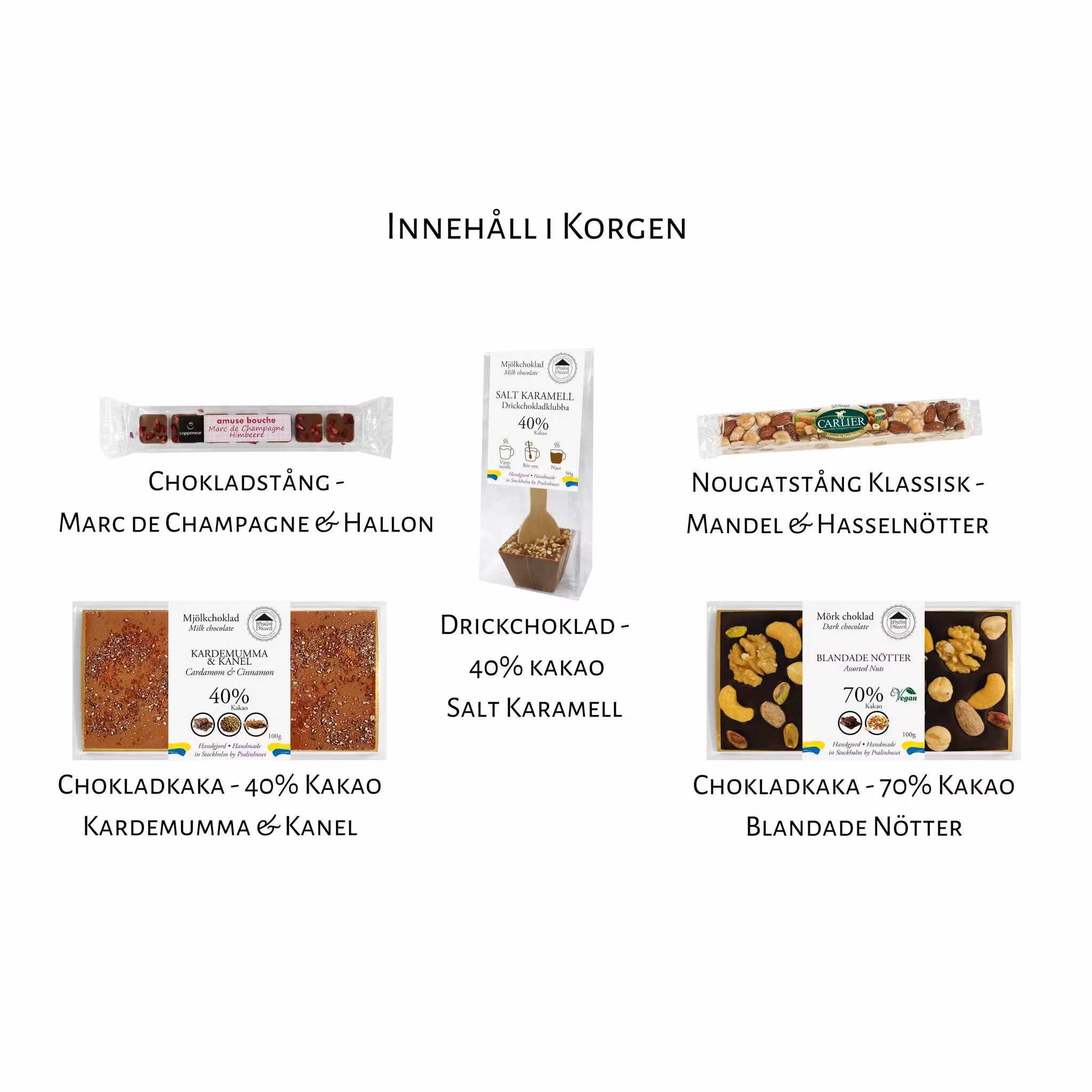 - 2x Chokladkakor 100g ( 1 x 40% kakao med Kardemumma & Kanel, 1x 70% Kakao med Blandade Nötter)