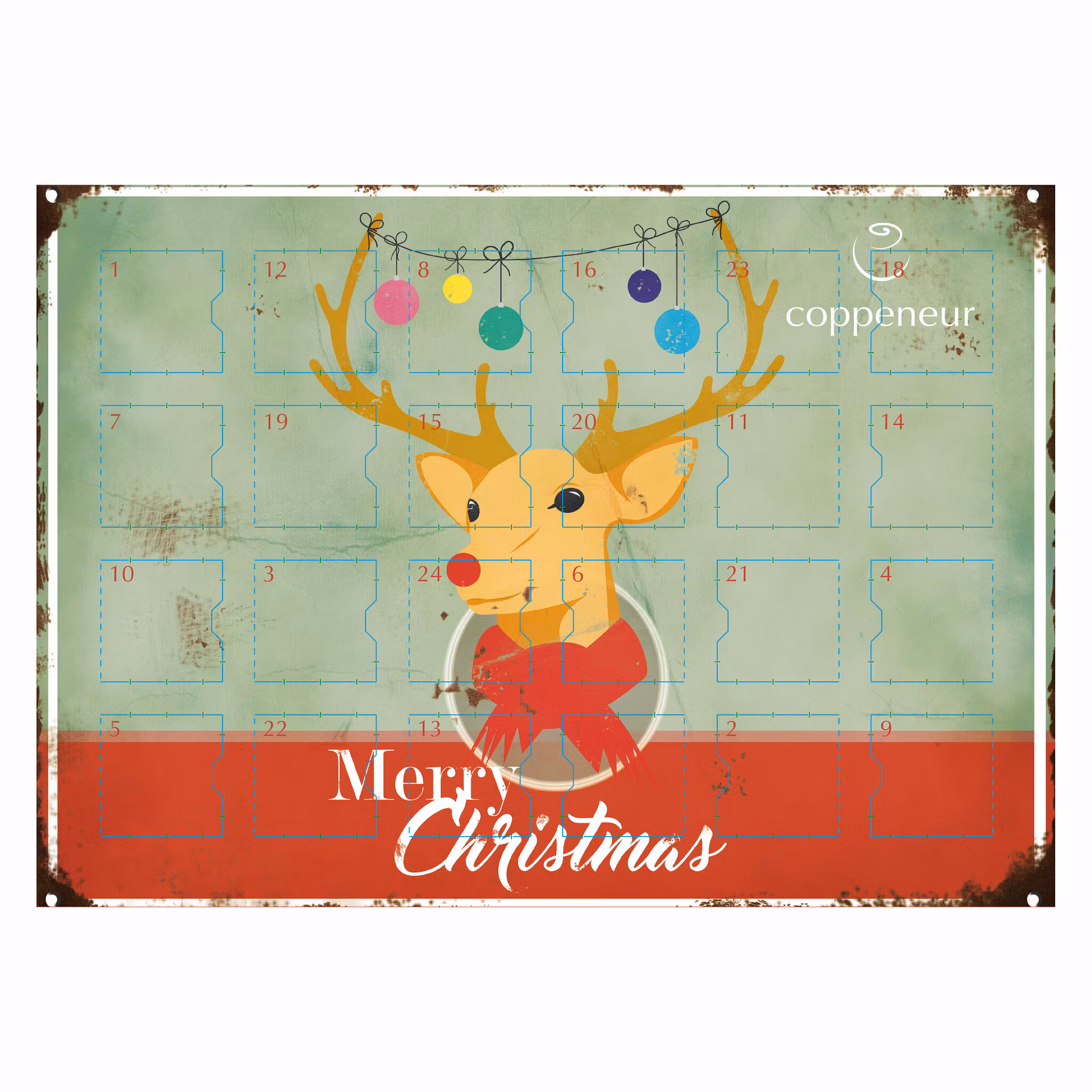 Julkalender med en härlig blandning av stjärnformade praliner i olika smaker, pralinerna är alkoholfria.