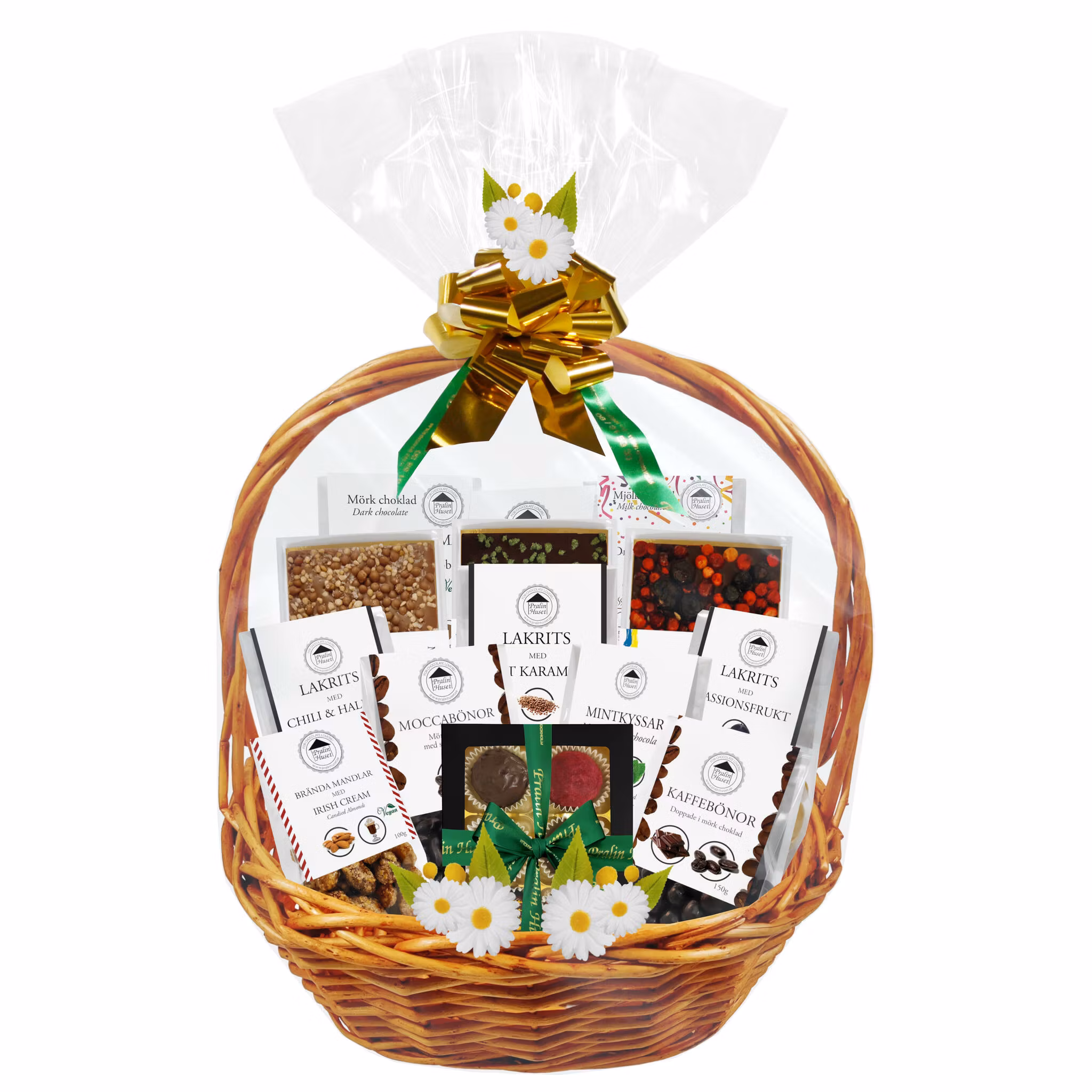 Pralinhusets presentkorg erbjuder en fantastiskt lyxiga smakupplevelse. Denna korg är en himmelsk blandning av våra produkter som är utvalda med omsorg.