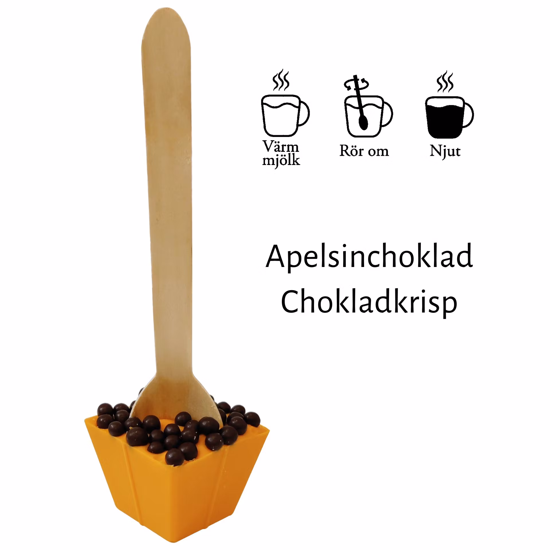 Pralinhusets handgjorda drickchokladklubbor finns i många spännande smaker. Låt den underbart lena chokladen smälta i en kopp varm mjölk, rör om, och njut. För variation, byt ut den varma mjölken mot en kopp kaffe.